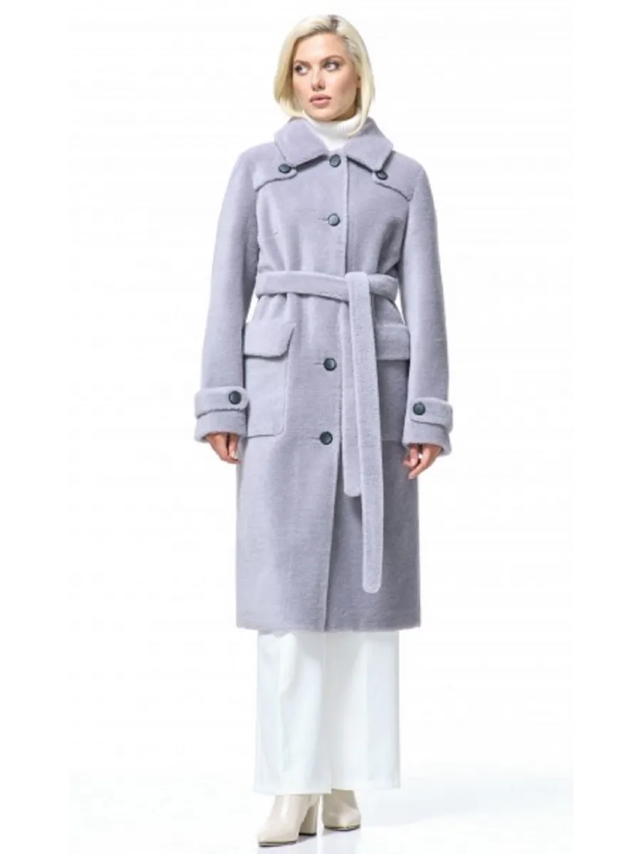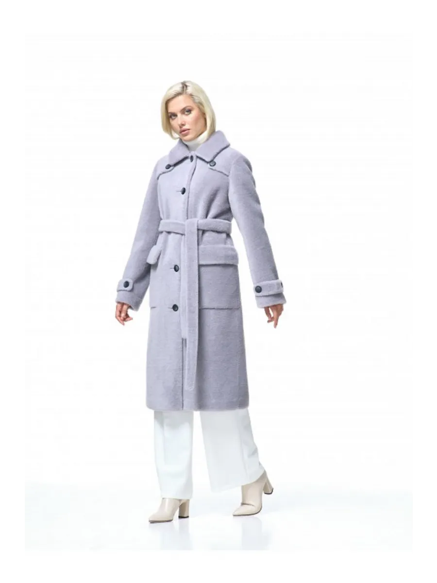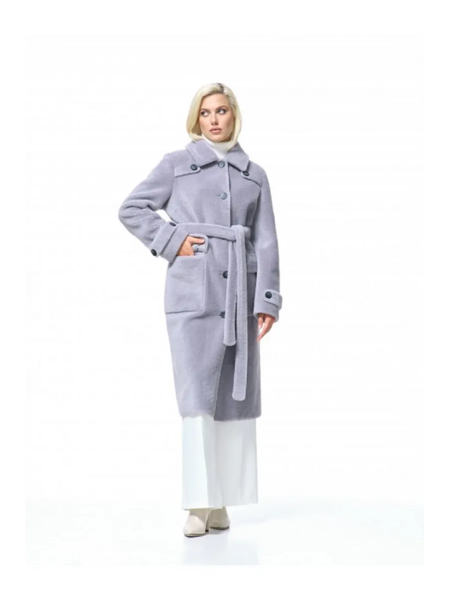 Элегантное пальто из овечьей шерсти мериноса имеет прямой силуэт и дополнено поясом. Центральная застежка на пуговицах. Длинные прямые рукава украшены патами. По бокам два накладных кармана с клапанами. На спинке и лицевой стороне отлетная кокетка.