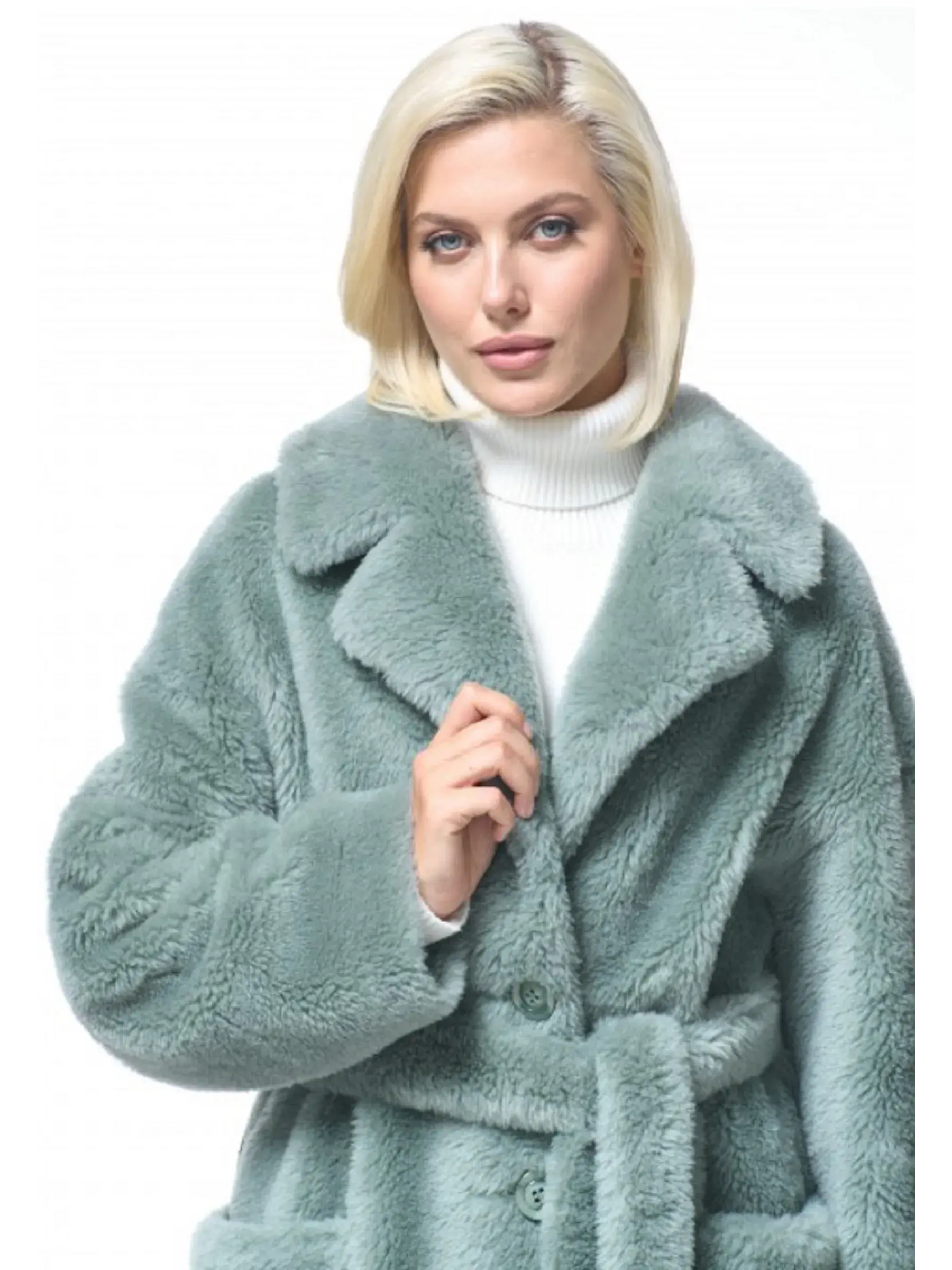 - Шуба искусственная на основе шерсти чебурашка экомех, зеленая, SilverFox