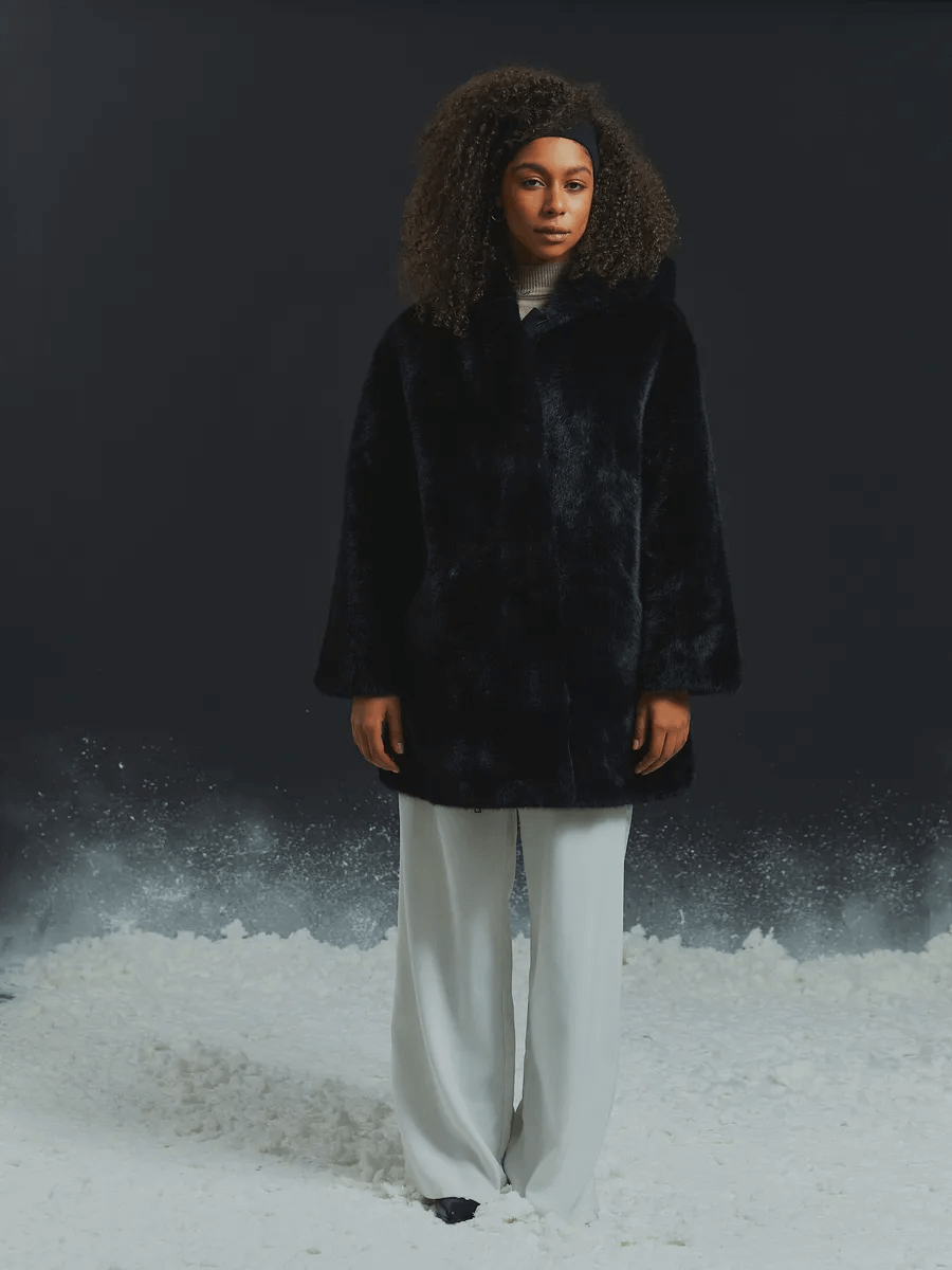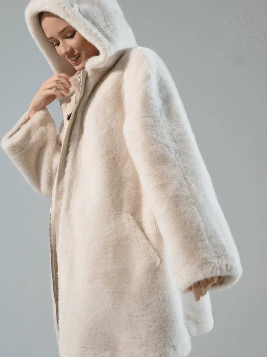 Эта искусственная шуба, выполненная из высококачественного полиэстера, станет вашим верным спутником в прохладные весенние дни. Лаконичный дизайн и однобортный крой придают ей элегантный вид, а несъемный капюшон защитит от неожиданного ветра.