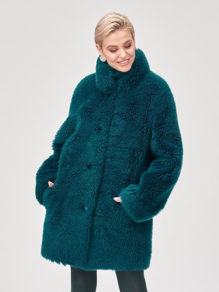 Шуба из шерсти чебурашка тедди экошуба, темно-зеленая, SilverFox