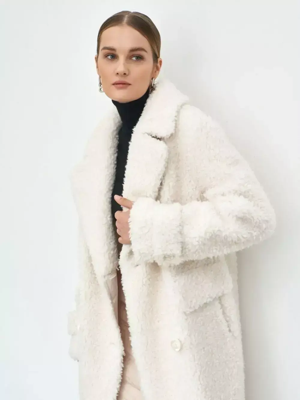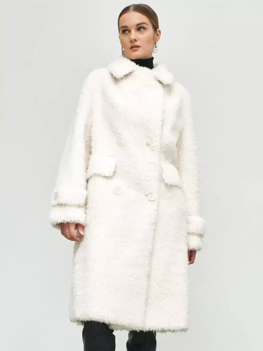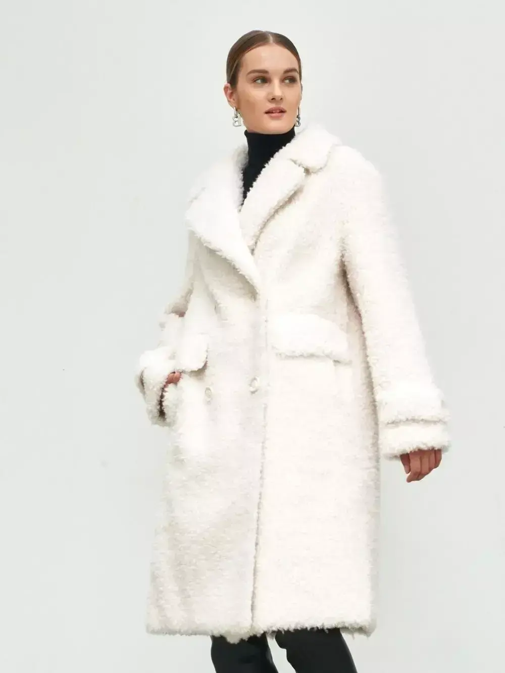 - Шуба из шерсти мериноса чебурашка, белая, SilverFox