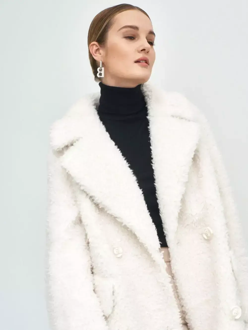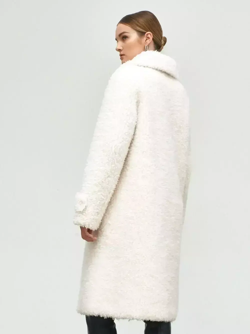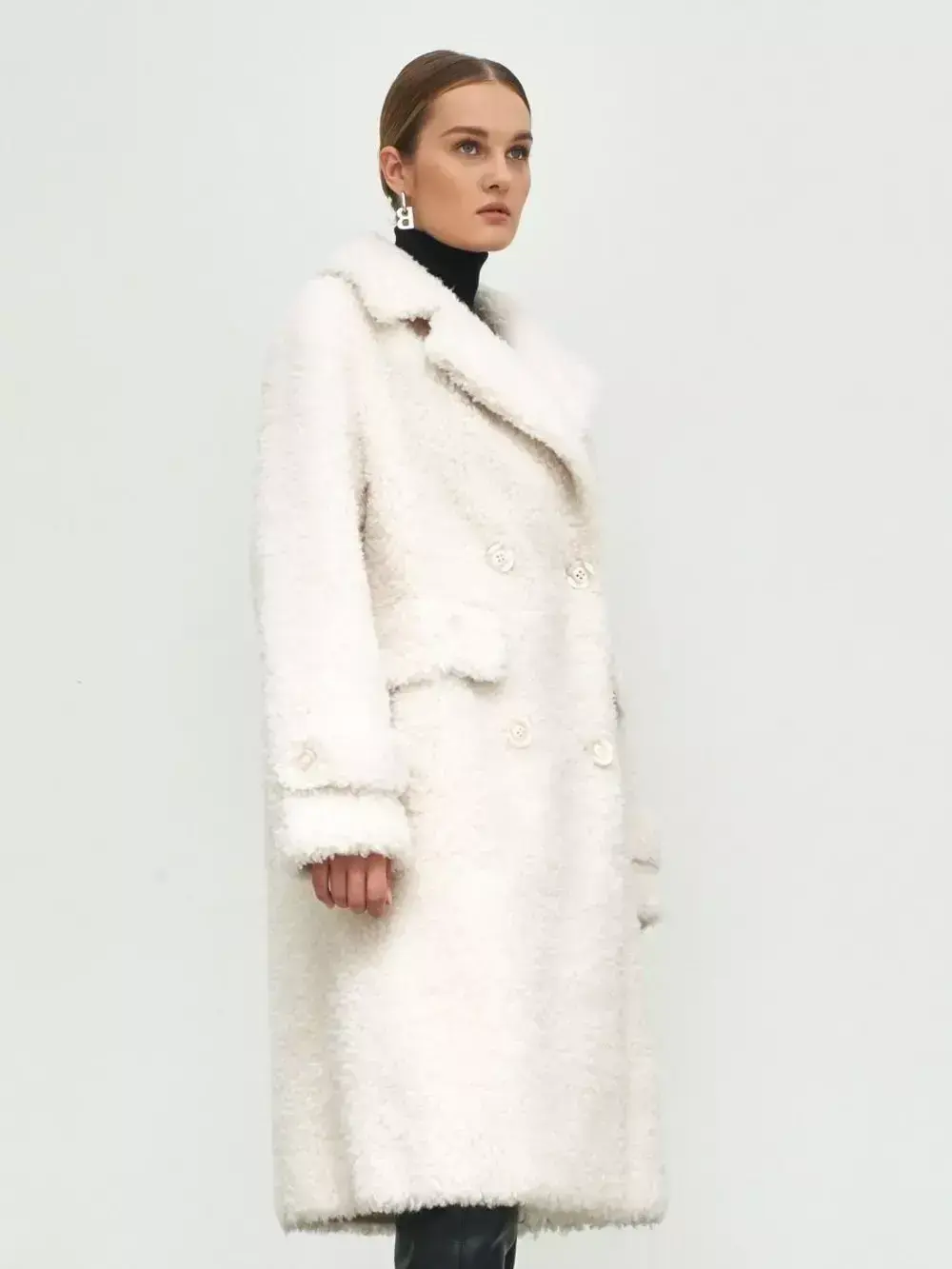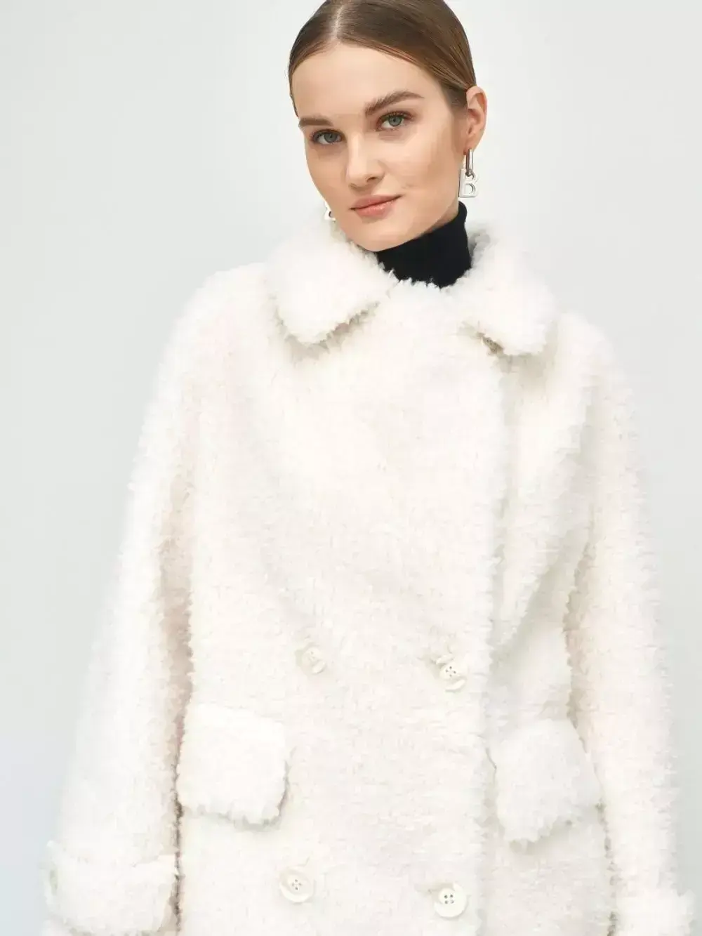 - Шуба из шерсти мериноса чебурашка, белая, SilverFox