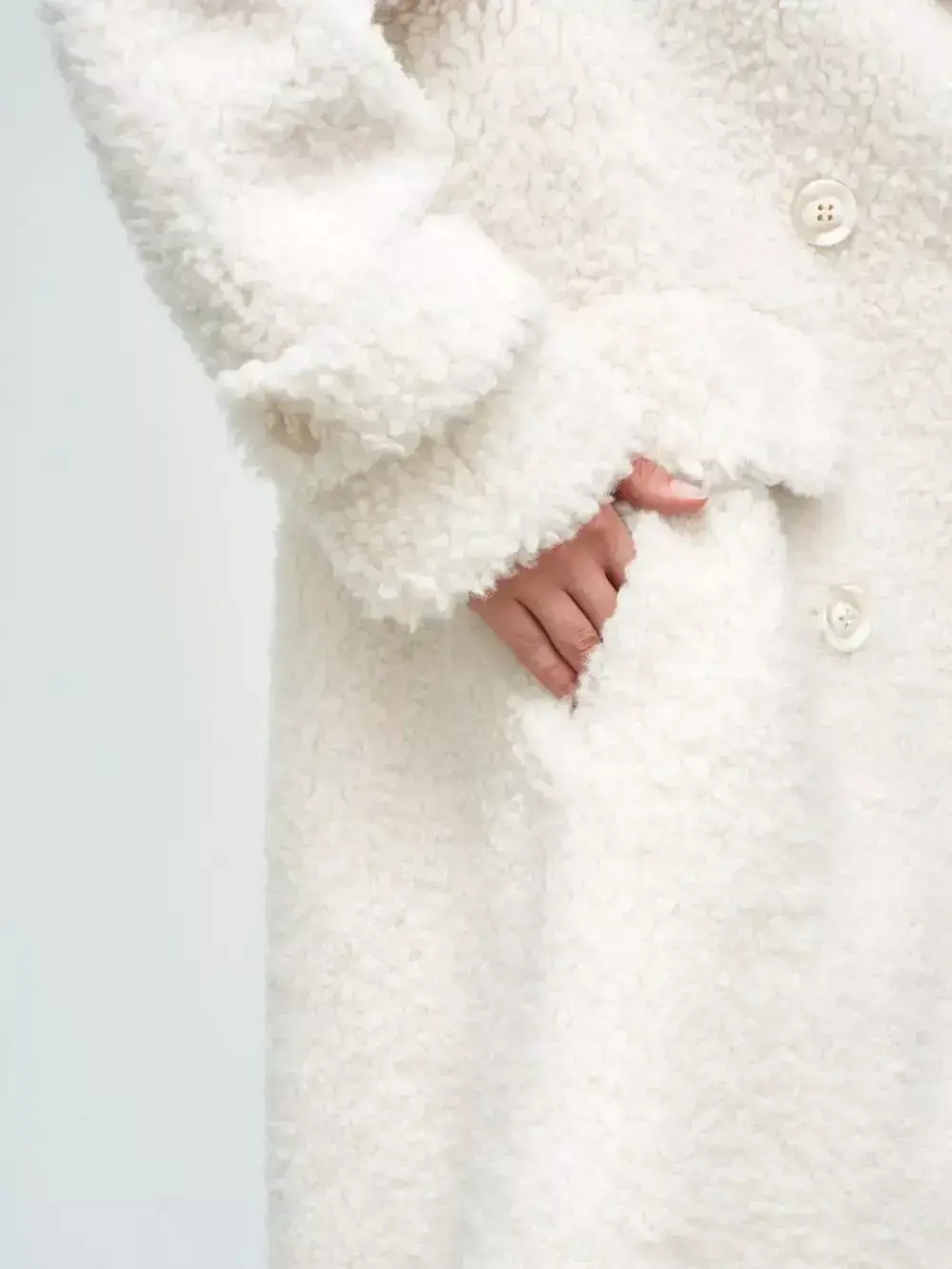 Премиальная шуба «Чебурашка» выполнена из 100% шерсти мериноса. Она обладает английским воротником, удобными прорезными карманами и застежками на пуговицах. Пальто имеет прямой крой и силуэт, выполненный в стиле небольшого оверсайз. Шерсть мериноса прекрасно пропускает воздух, обеспечивая комфорт в любую погоду.