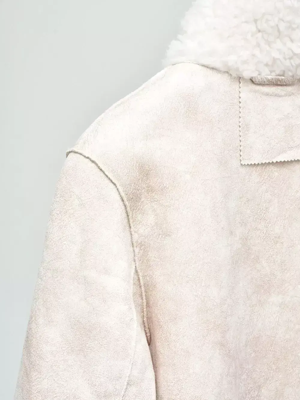 Материал шубы состоит из трех слоев, которые прочно соединены между собой: ворс из овечьей шерсти, трикотажная основа и искусственная замша. Благодаря этому изделие отличается неприхотливостью в уходе: его легко очищать от загрязнений, и оно устойчиво к образованию потертостей.