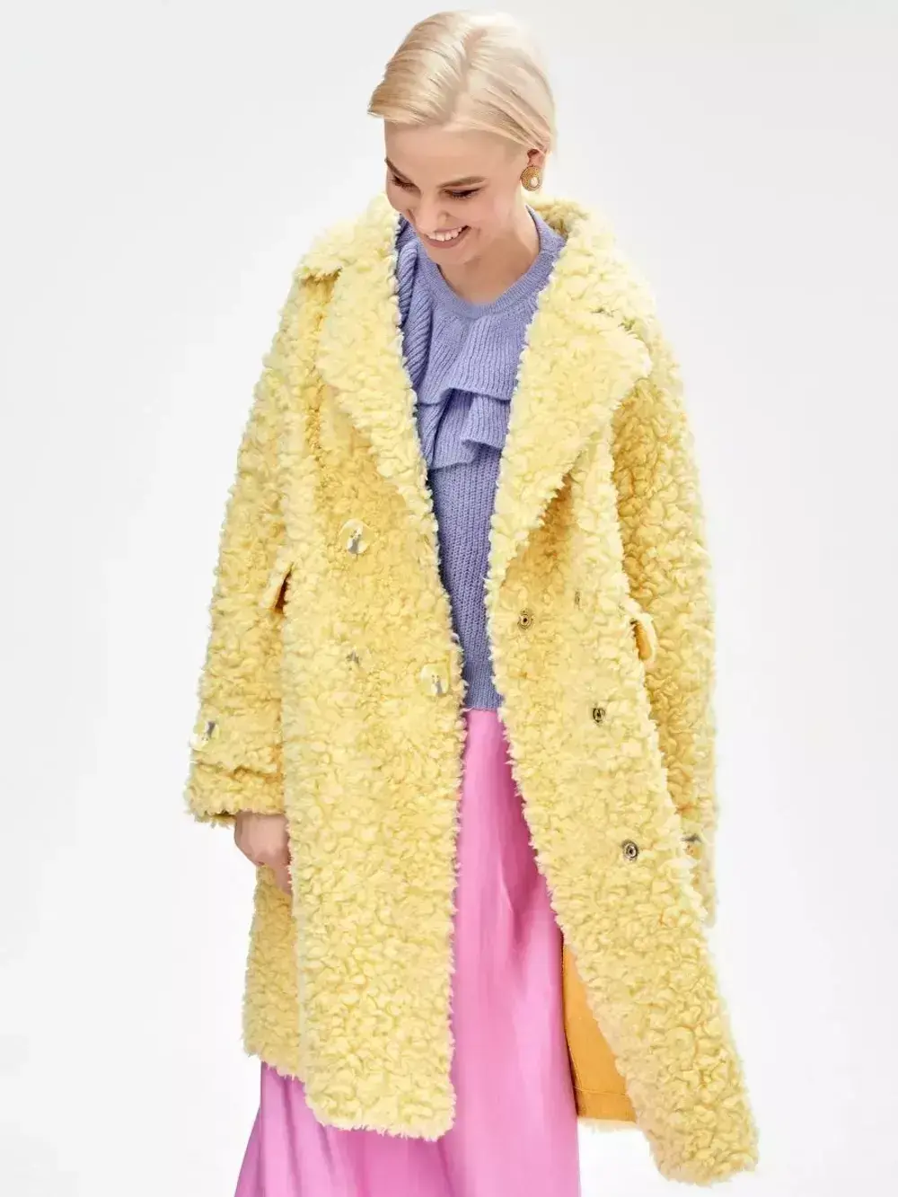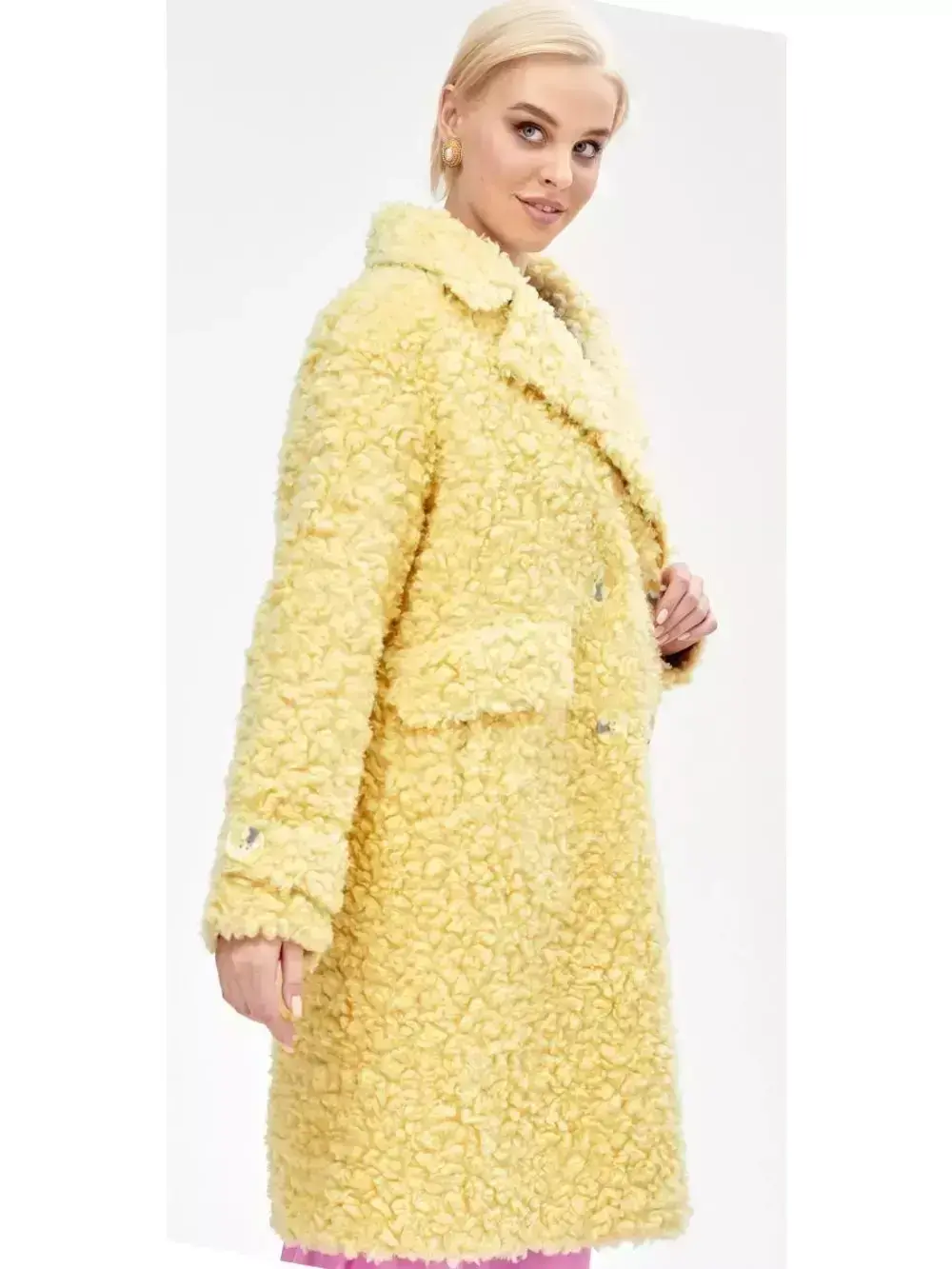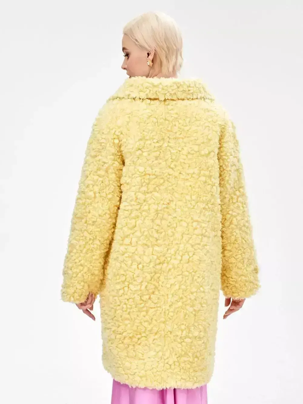 - Шуба из шерсти мериноса чебурашка, желтая, SilverFox